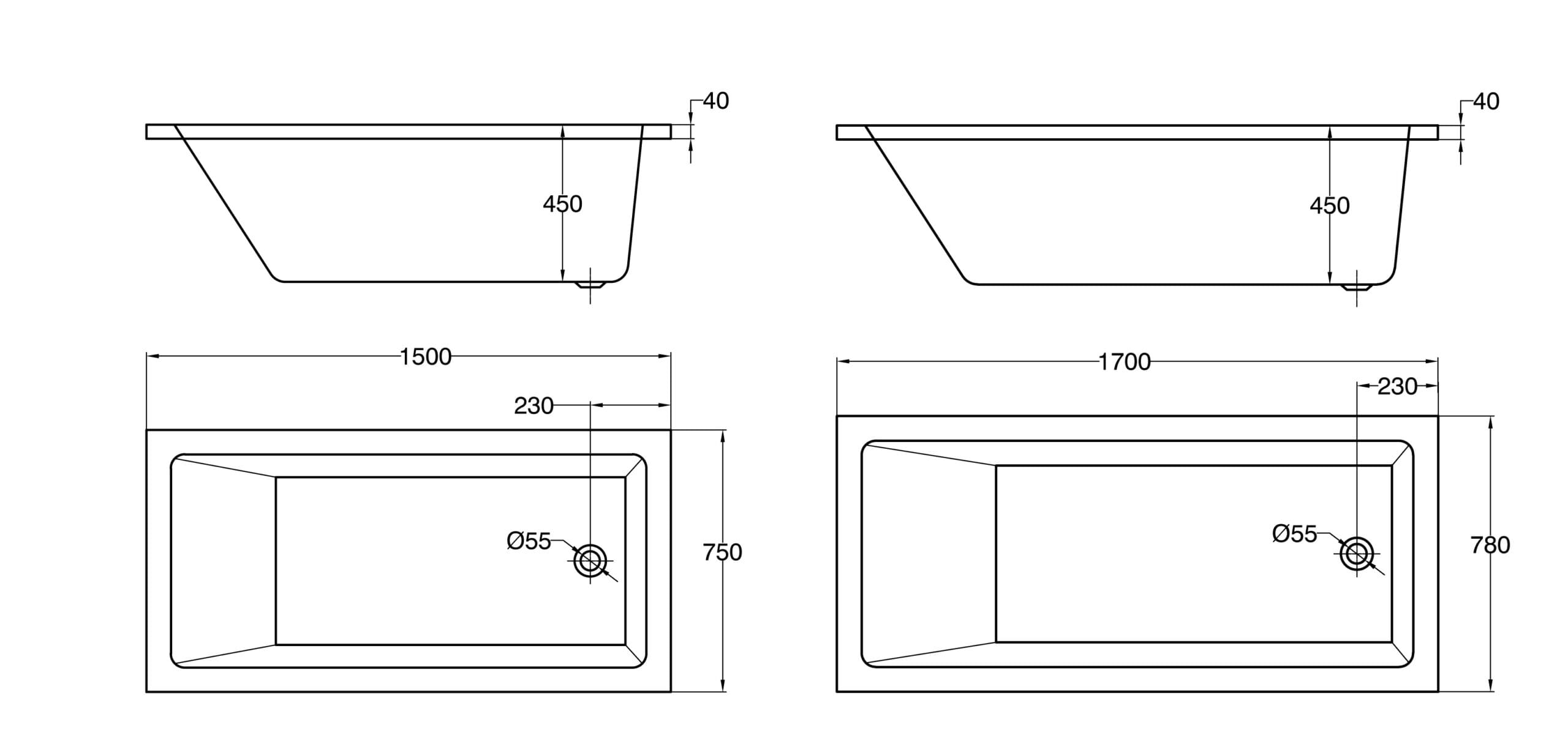 VY170 Deep Bath Tub 1500*750mm/1700*780mm